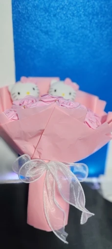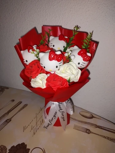 Everything was perfect, it arrived very quickly and I was informed at all times about the whereabouts of the package. It arrived very well packaged and without any deformation, with large bubble wrap. Hello Kitty's faces are made of plastic, similar to the faces of traditional dolls. I thought they were plush, but this way is also very good. It comes with a very cute little card to write a little message on.