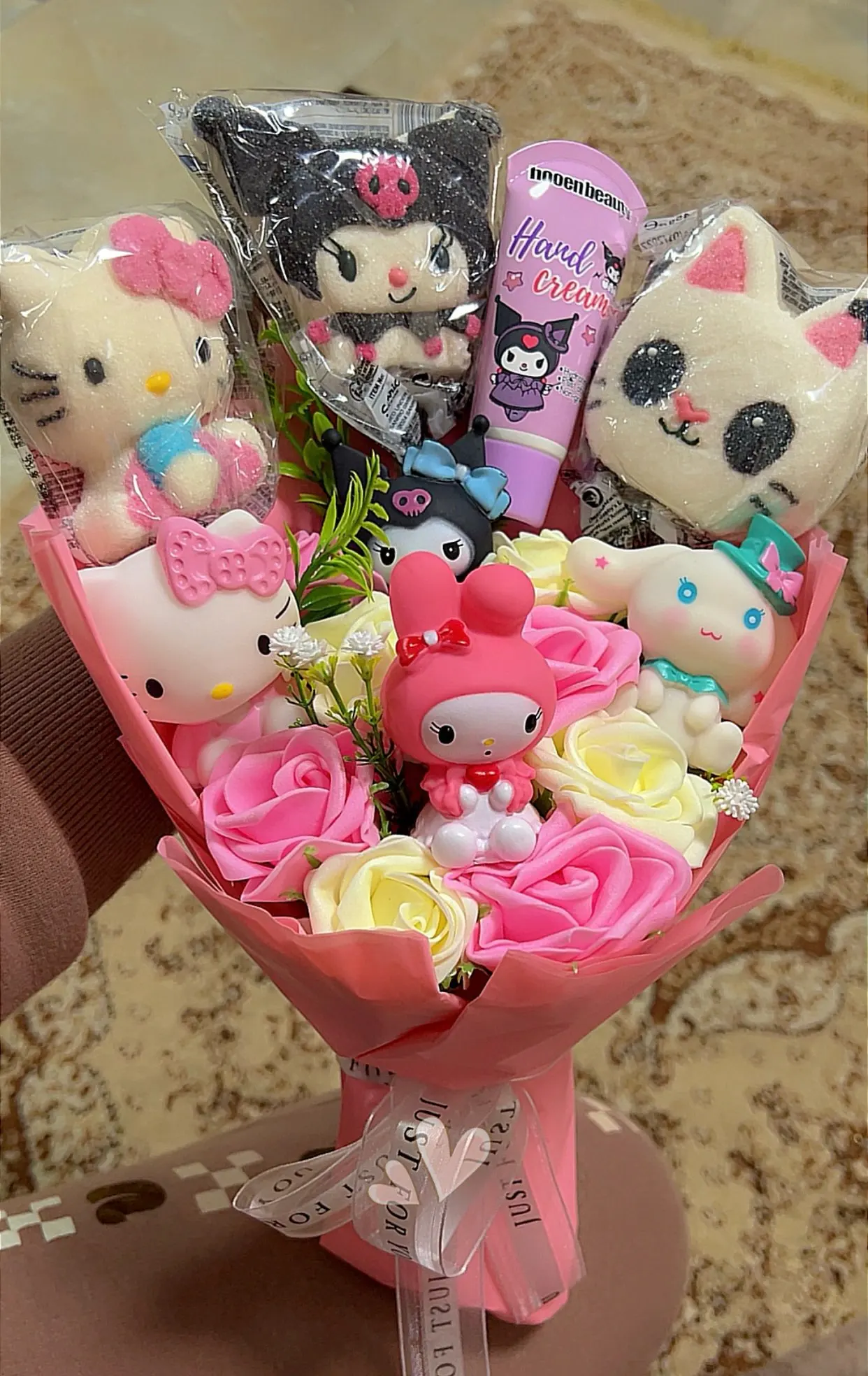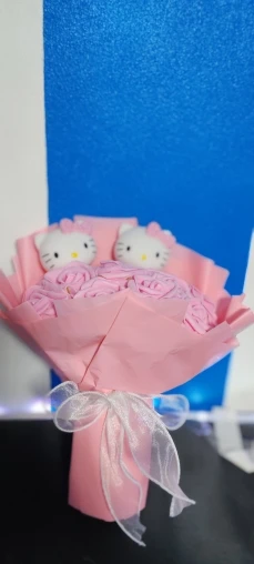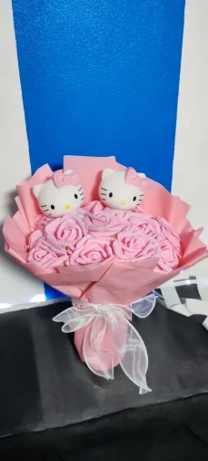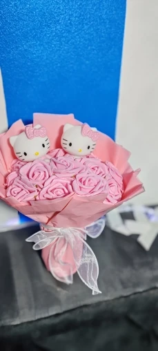 Add a cozy and charming touch to any occasion with this adorable bouquet featuring a high-quality Kuromi figurine surrounded by beautifully knitted decorative flowers. A lasting and thoughtful gift, perfect for birthdays, special celebrations, or simply to bring a smile to someone special!